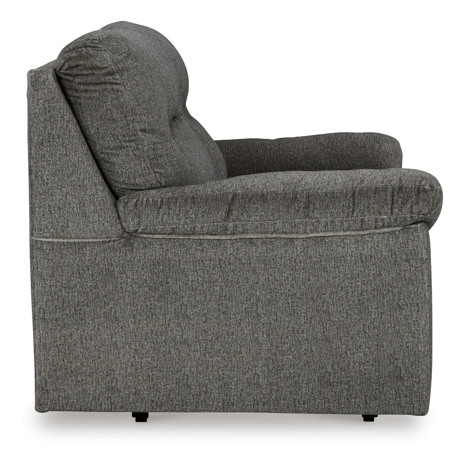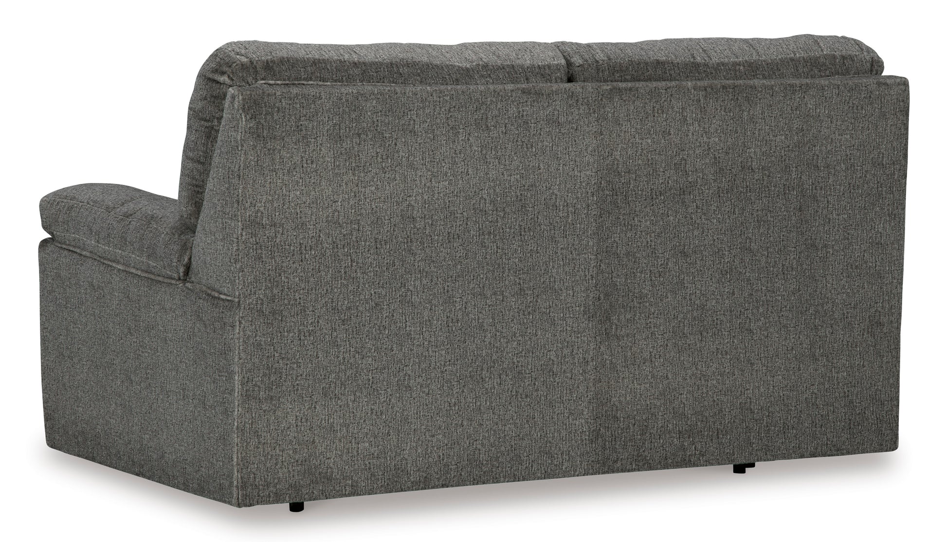 Check out this ultimate hangout love seat. Its buttery-soft upholstery invites you to relax and stay a while. Comfortable, casual, and contemporary.