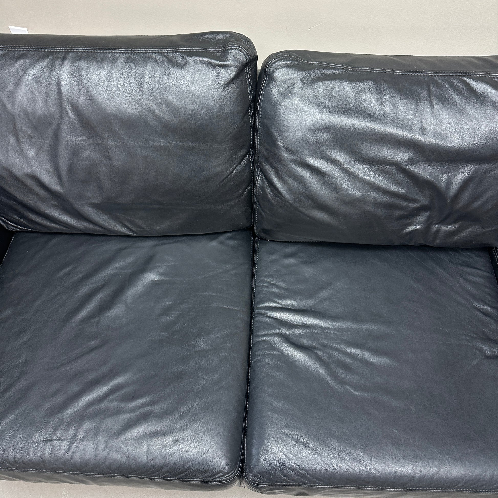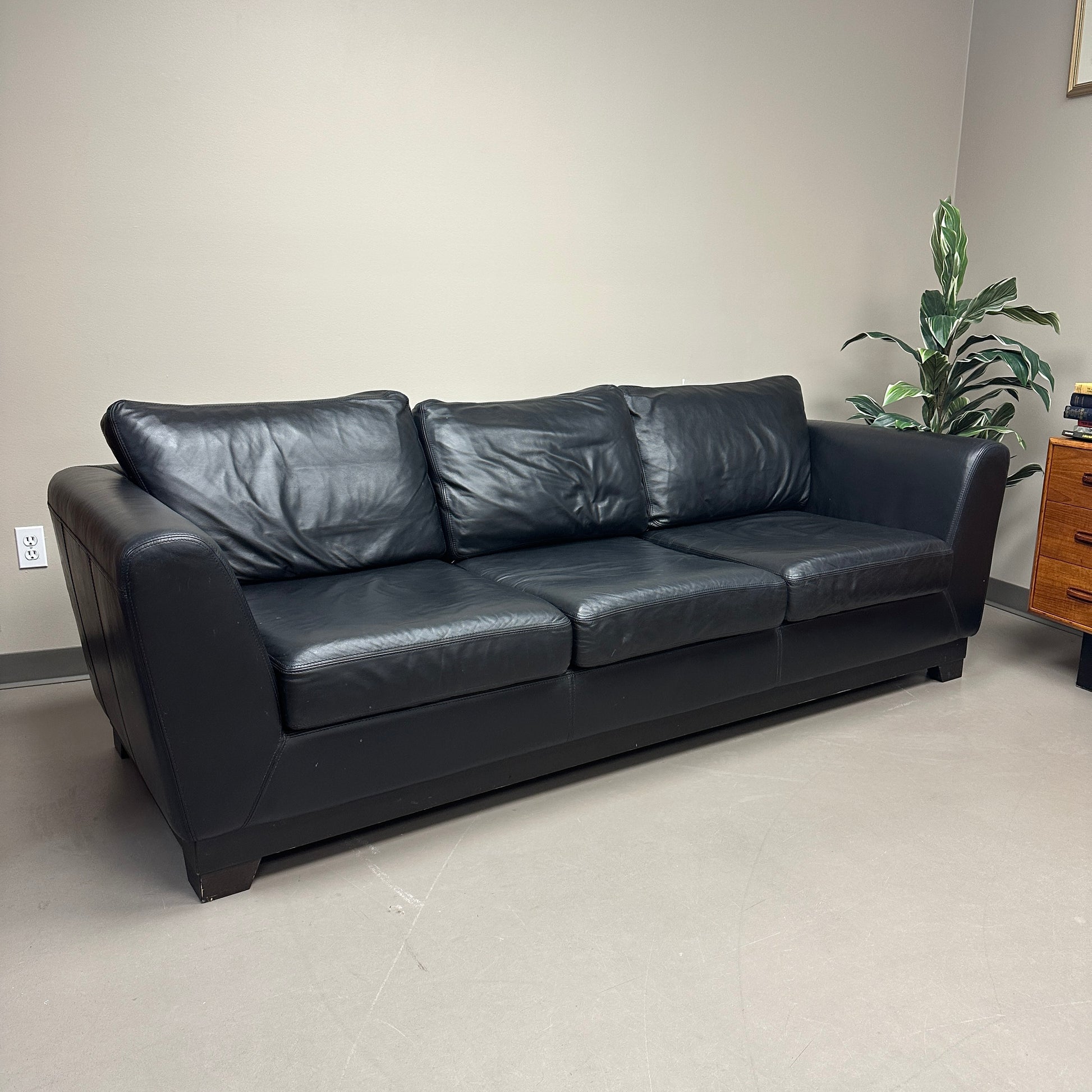 Black Canadian leather couch in good condition. Pet friendly. Some cosmetic details showing in the photos. 100% leather. Made in Canada by Lind Furniture.