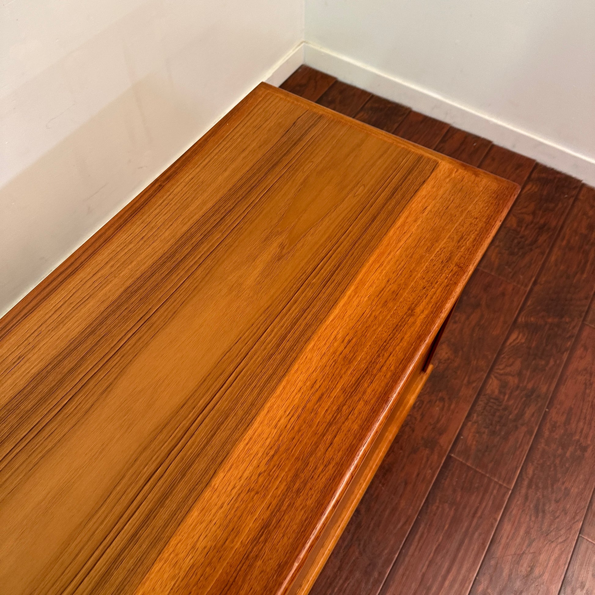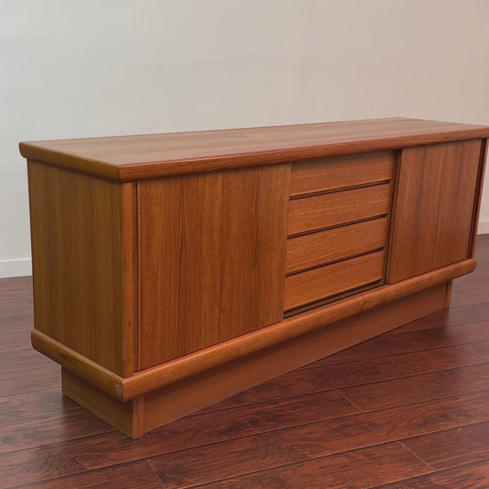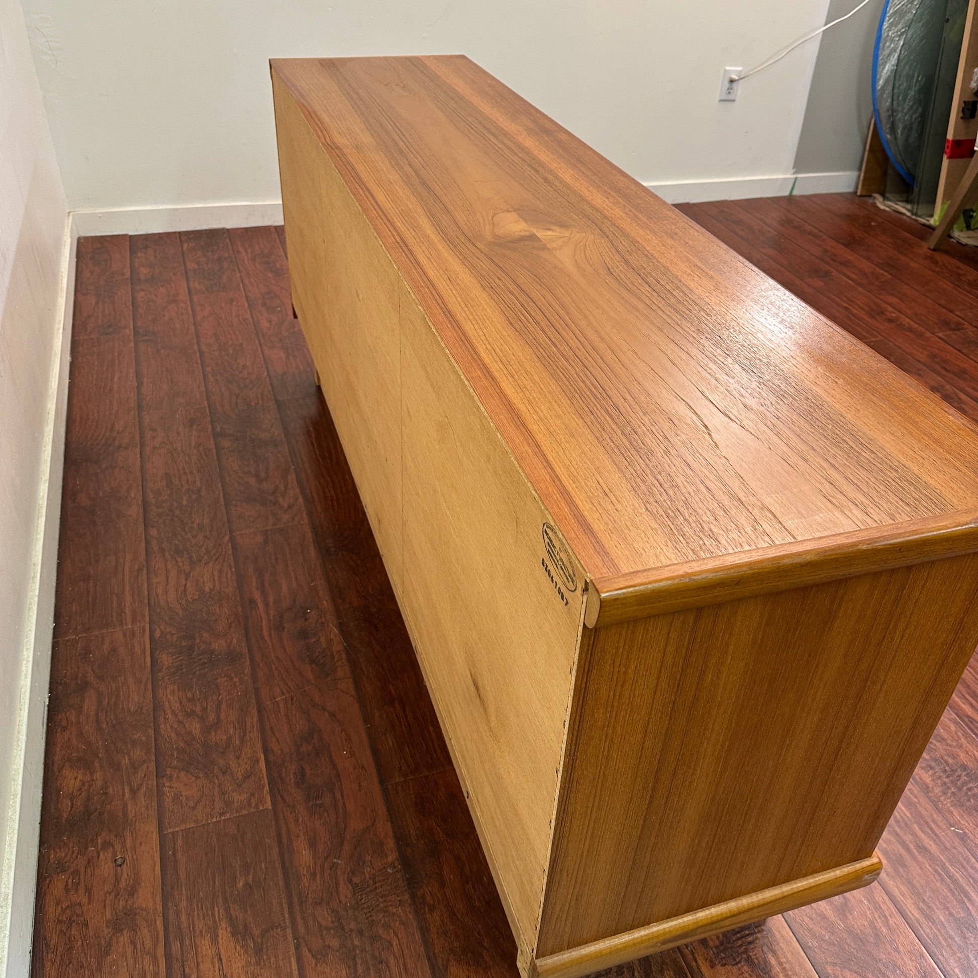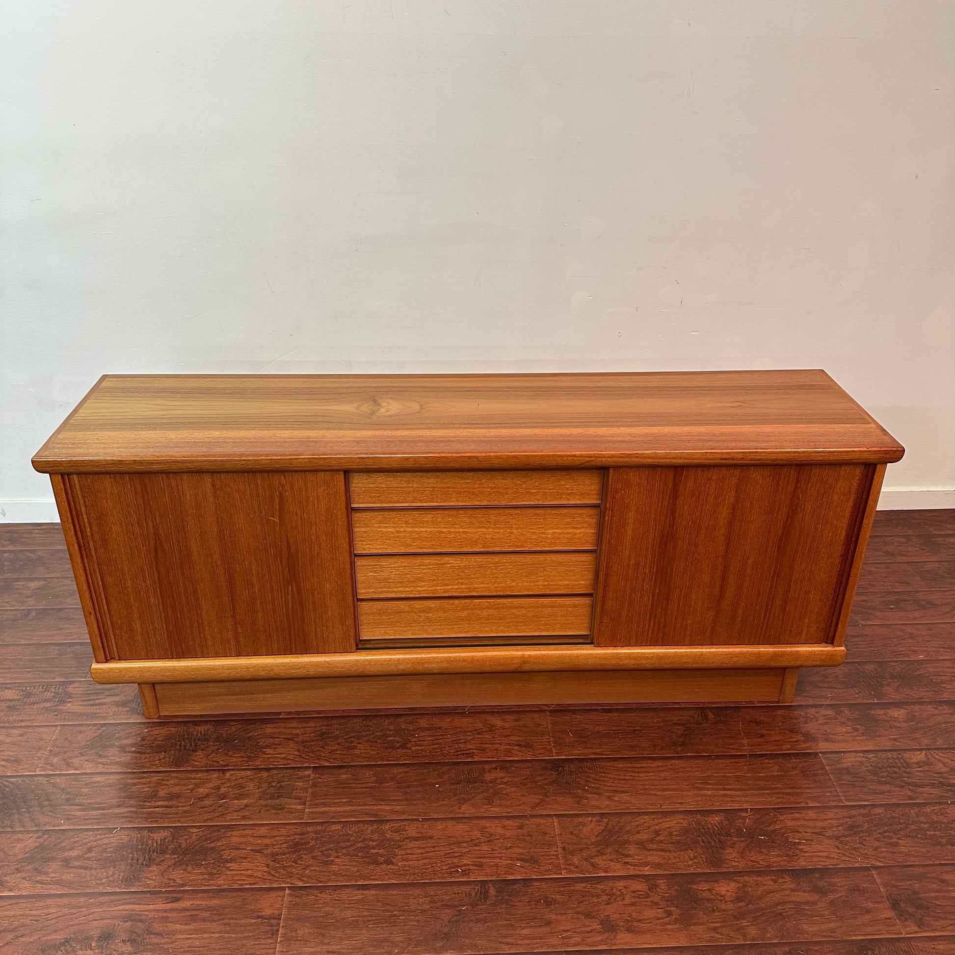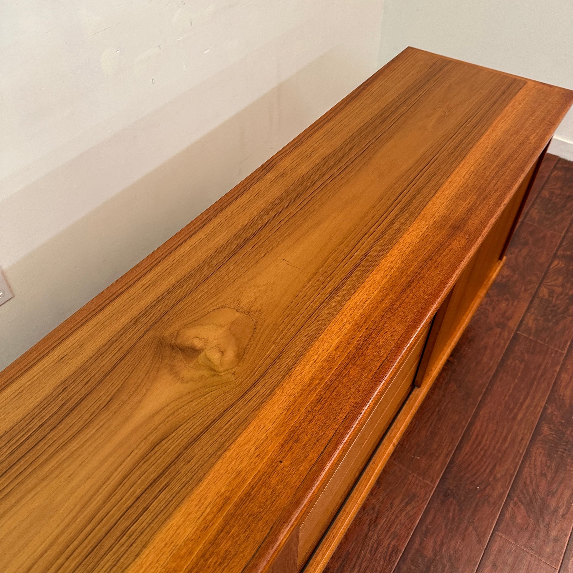 Mid century Canadian teak sideboard in pristine condition. Sliding doors on both sides and all drawers working fine. Scent-free environment. Not solid teak wood.