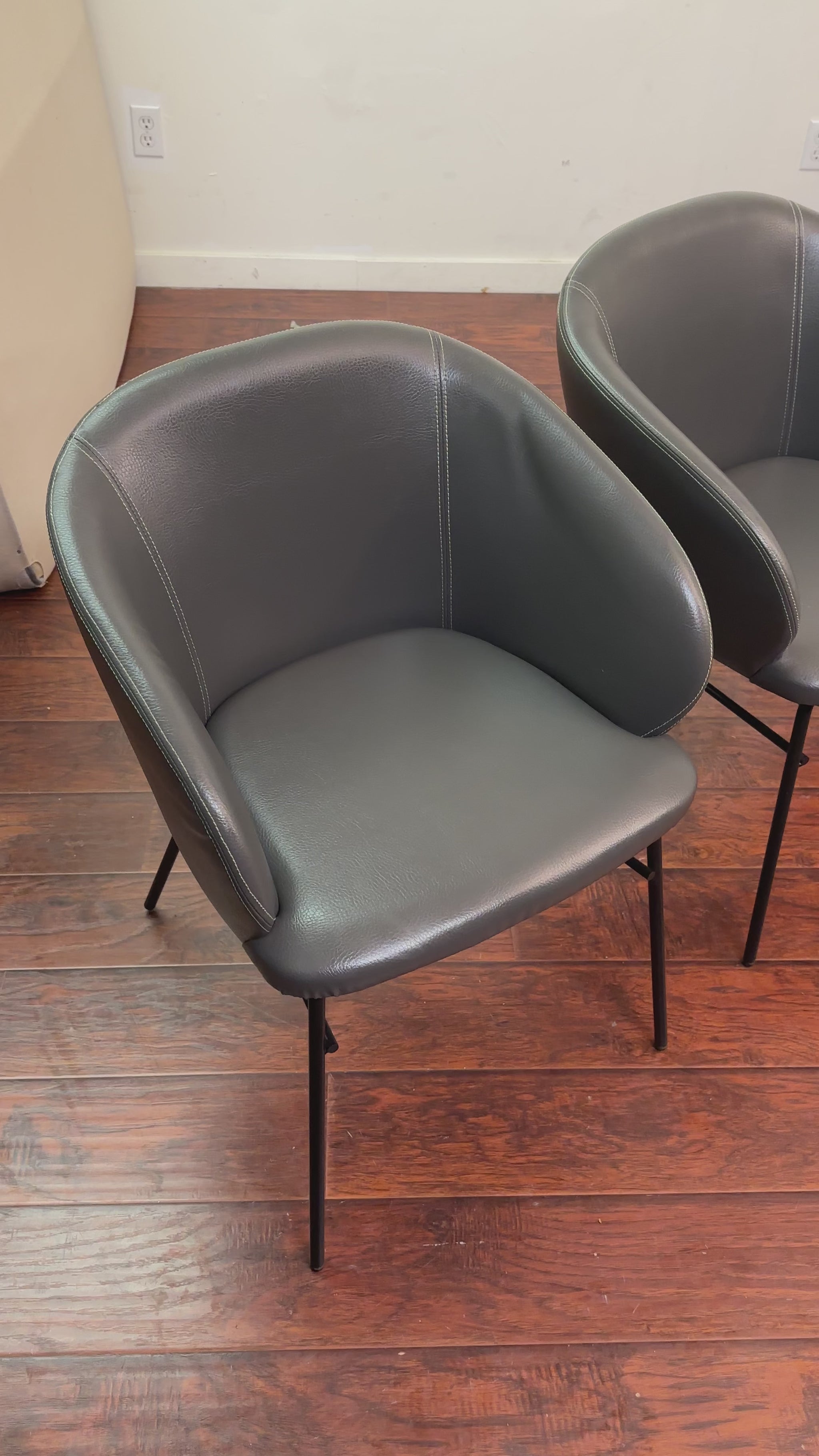 Modern top grain leather 4 dining chairs in like new condition. Clean and ready to go. Solid built and strong. Leather strap at the back to help it move around.
