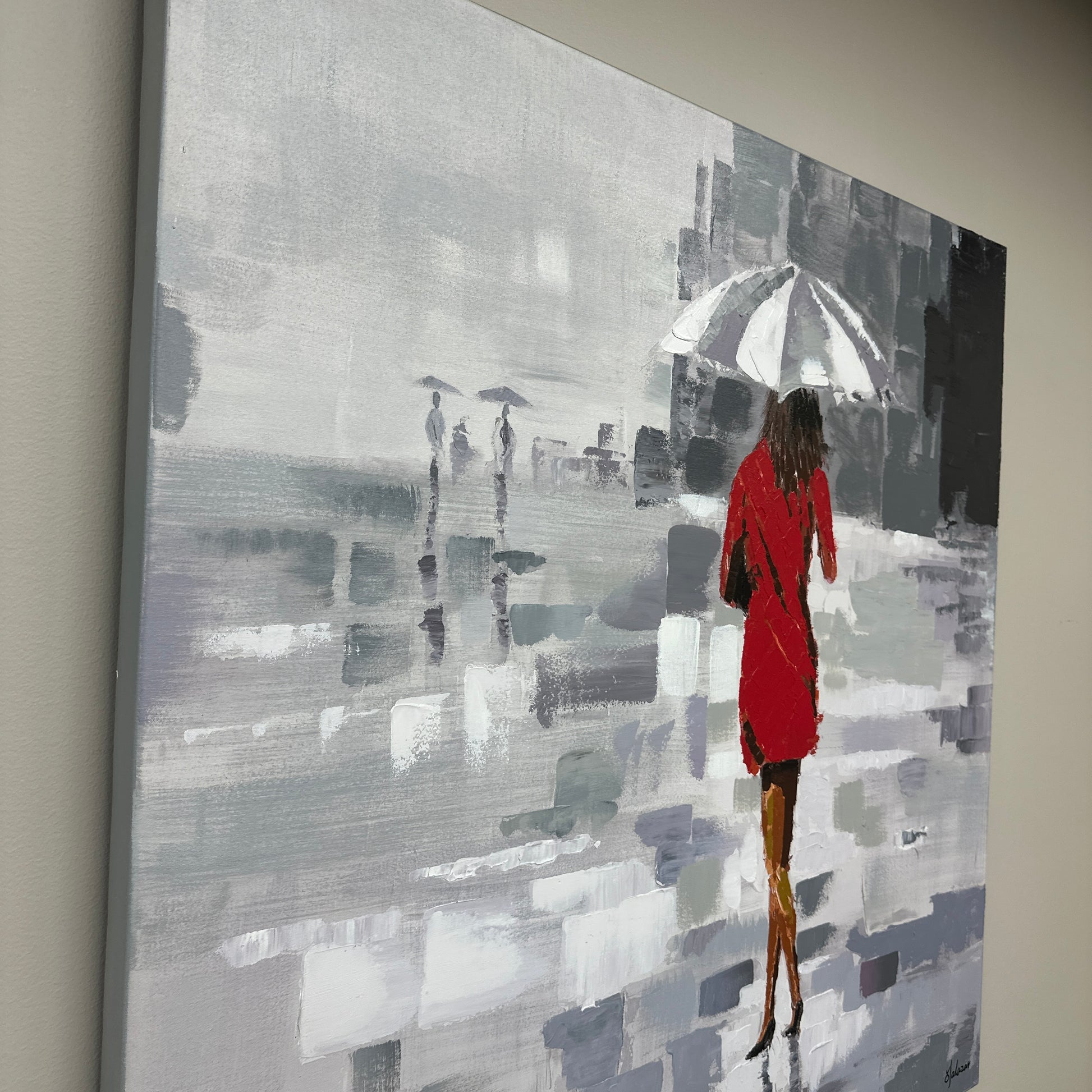 Wall art red dress woman.