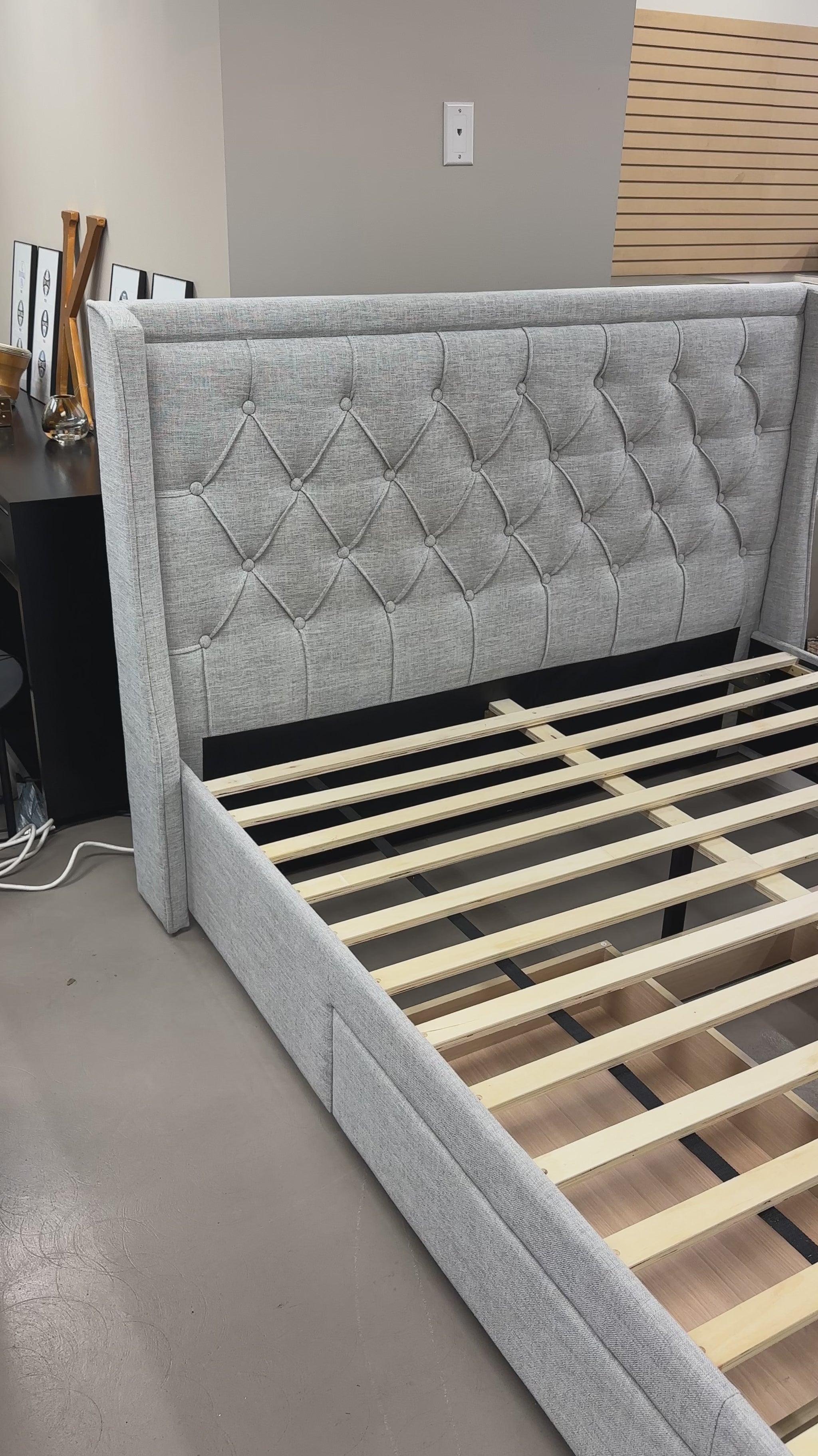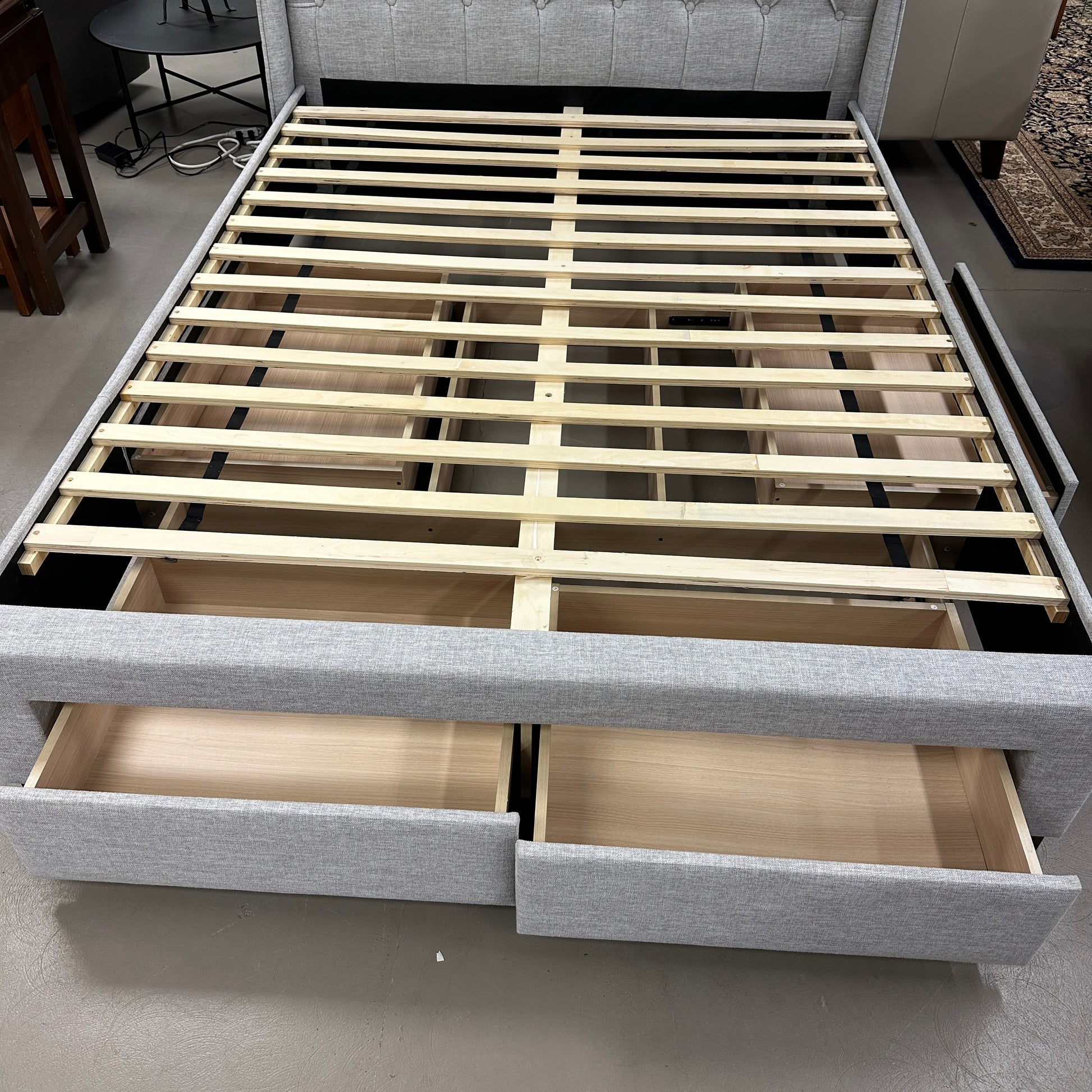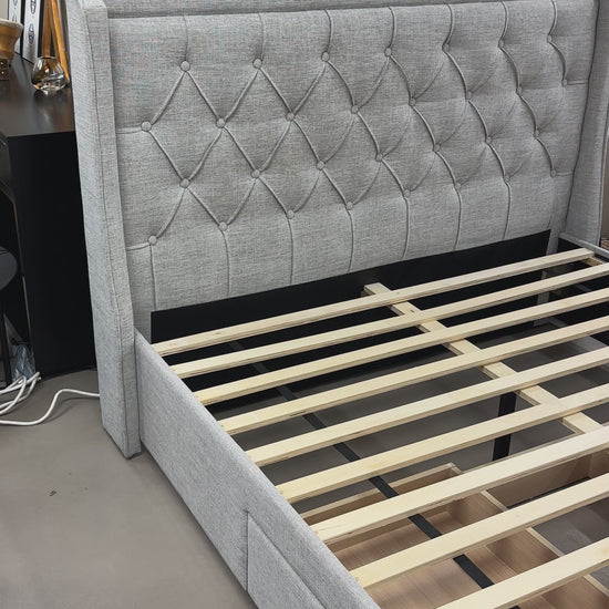 Tags: queen bed frame, upholstered bed, storage bed, queen storage bed, fabric bed, bed with drawers, modern bed, bedroom furniture, queen size bed, platform bed