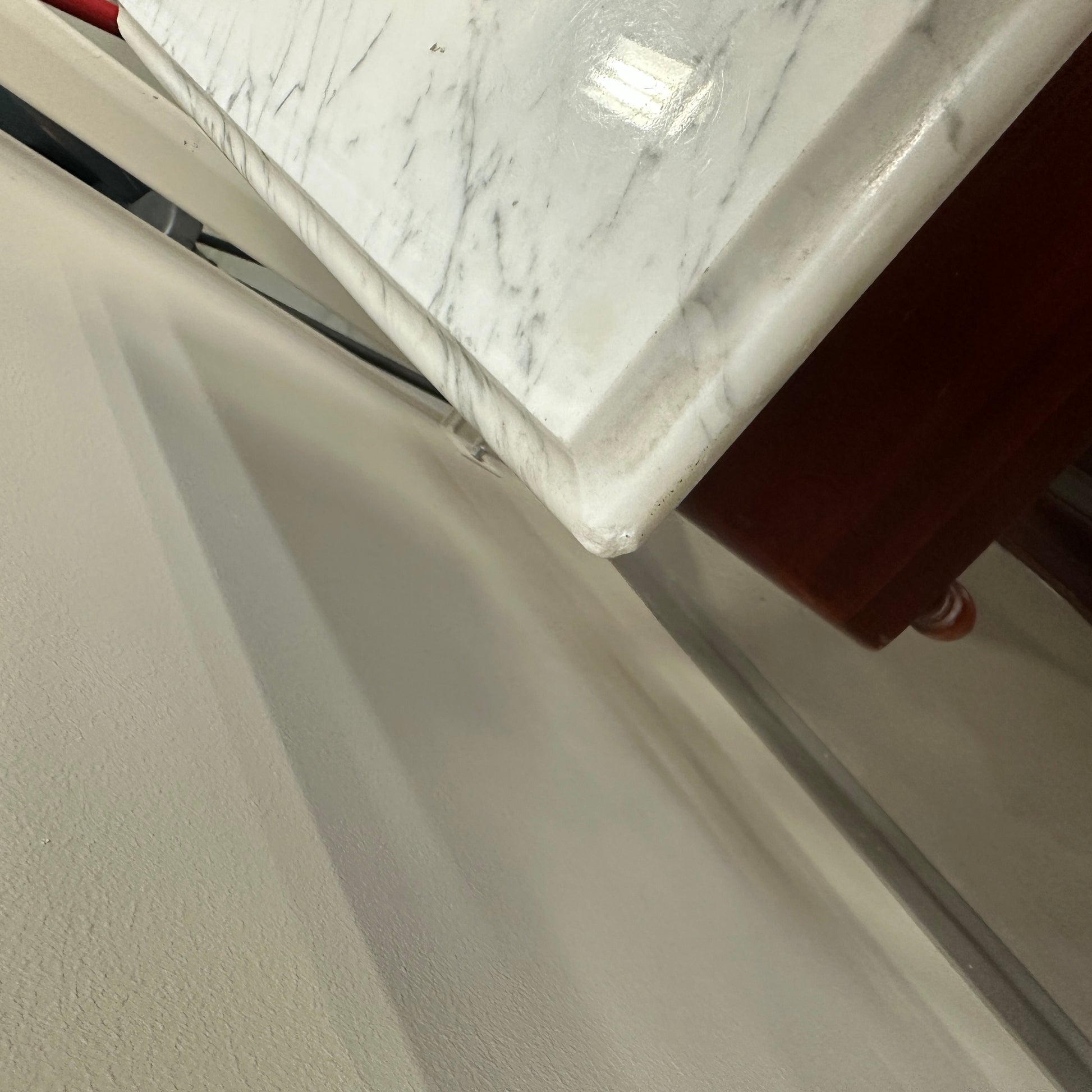 Marble stone top with cosmetic damage on the stone as seen in the pictures. Stone is removable.